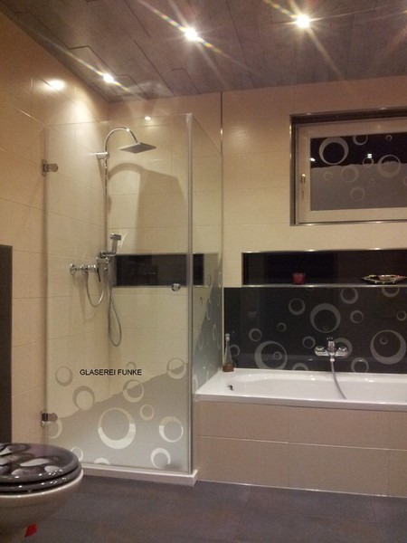 Glaswandverkleidung über Badewanne mit Dekor "Blase",